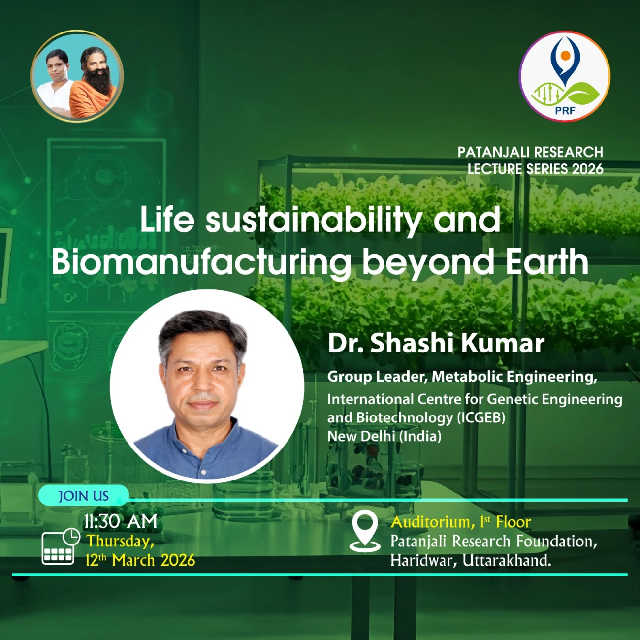 Location: Auditorium, 1st Floor, Patanjali Research Foundation