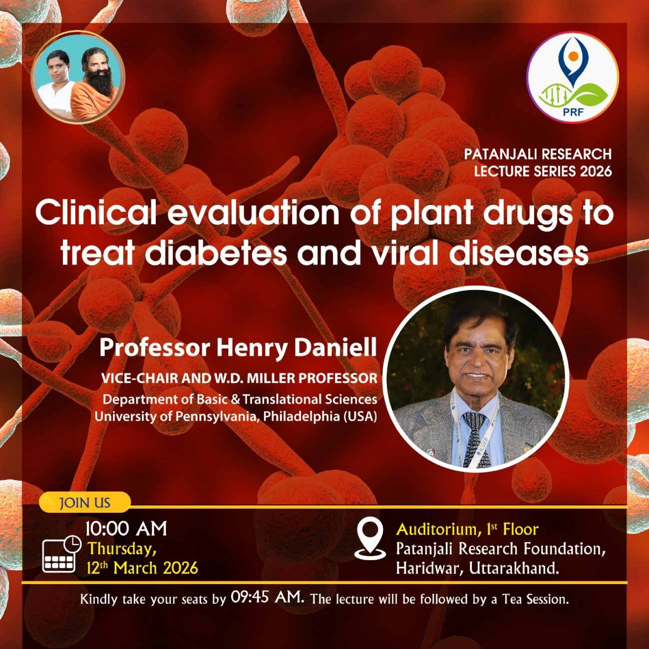 Join us for a very interesting and insightful talk titled "Clinical evaluation of plant drugs to treat diabetes and viral diseases"